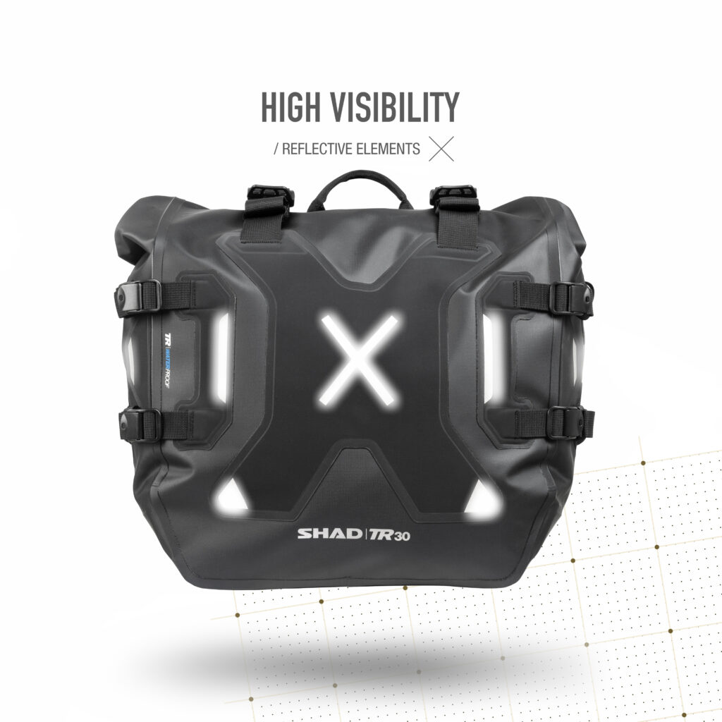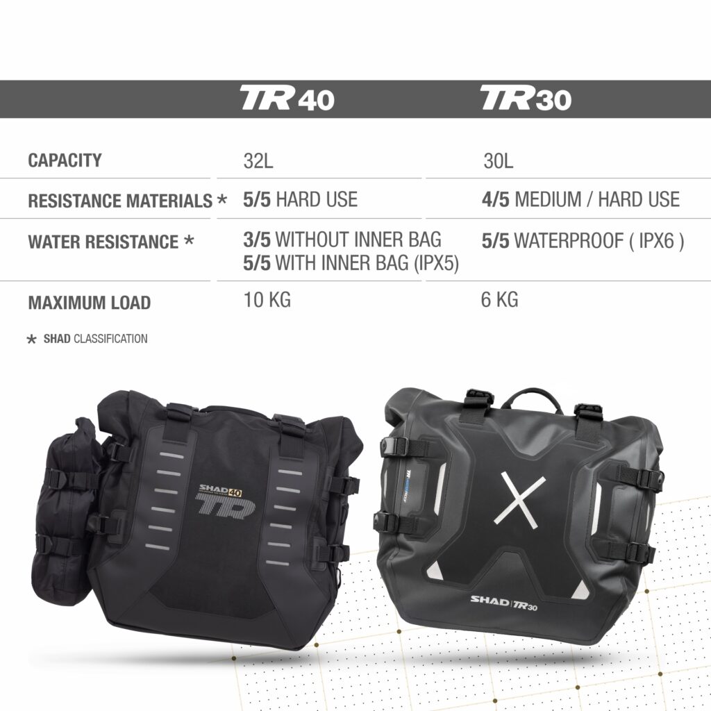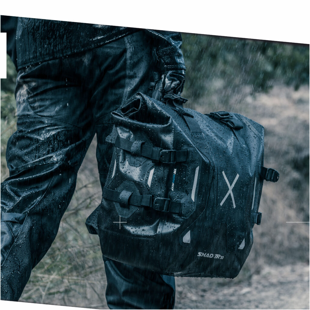 Las alforjas de aventura TR30 destacan por su grado de impermeabilidad IPX6 y su sistema de cierre “Double Locking System” (patentado), que permite bloquear la bolsa sobre la fijación 4P y 3P System e impedir, al mismo tiempo, el acceso a su interior.
