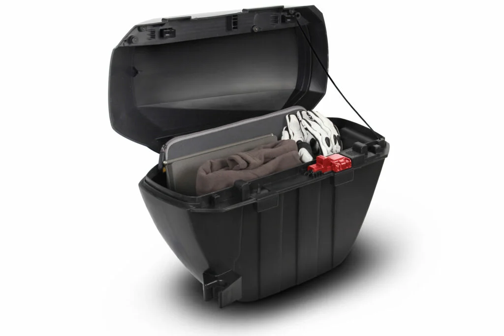 Las maletas laterales SH23 ALU LOOK destacan por su elegancia, ligereza y funcionalidad. Tienen una gran aerodinámica y mantienen su resistencia y estanqueidad. Su función de apertura superior permite al motorista acceder a la maleta sin necesidad de bajarse de la moto.
