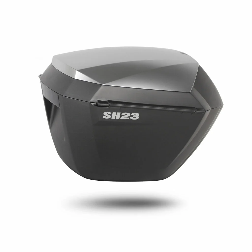 Las maletas laterales SH23 destacan por su elegancia, ligereza y funcionalidad. Cuentan con una gran aerodinámica y conservan su impermeabilidad y resistencia. Toda la capacidad de volumen es aprovechable (23 Litros) y la apertura en la parte superior permite al motorista acceder a la carga sin tener que levantarse de la moto.